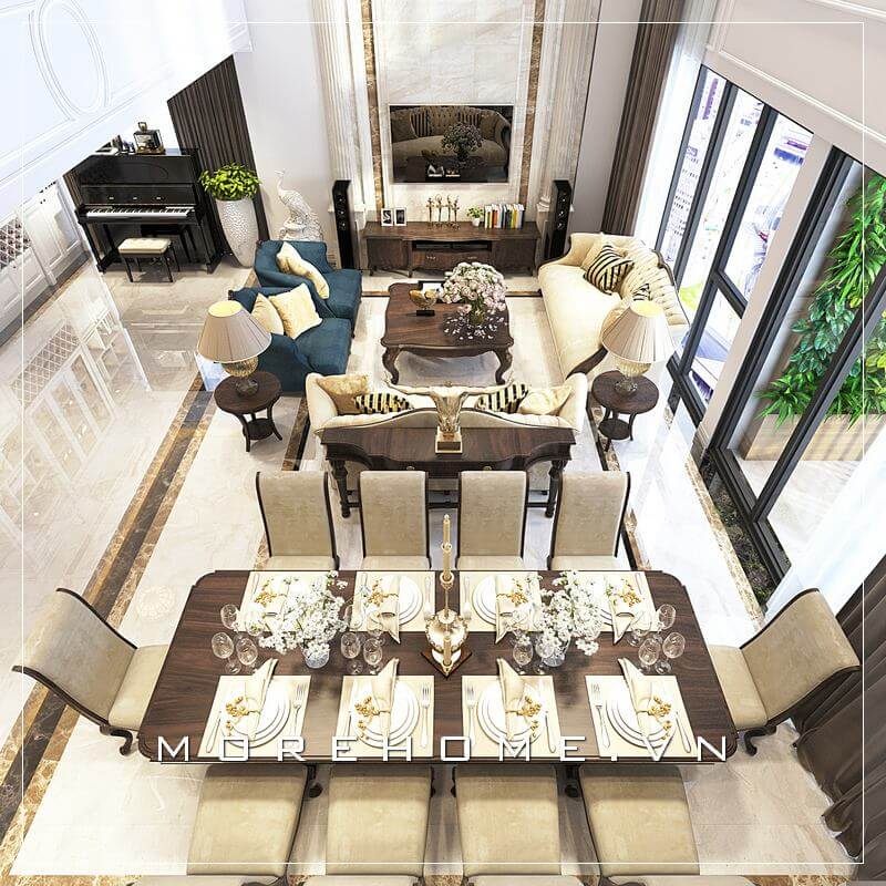 Ý tưởng trang trí không gian căn hộ thông tầng Duplex, Penthouse sử dụng chất liệu gỗ óc chó đã tạo nên vẻ đẹp vô cùng độc đáo cho toàn không gian.