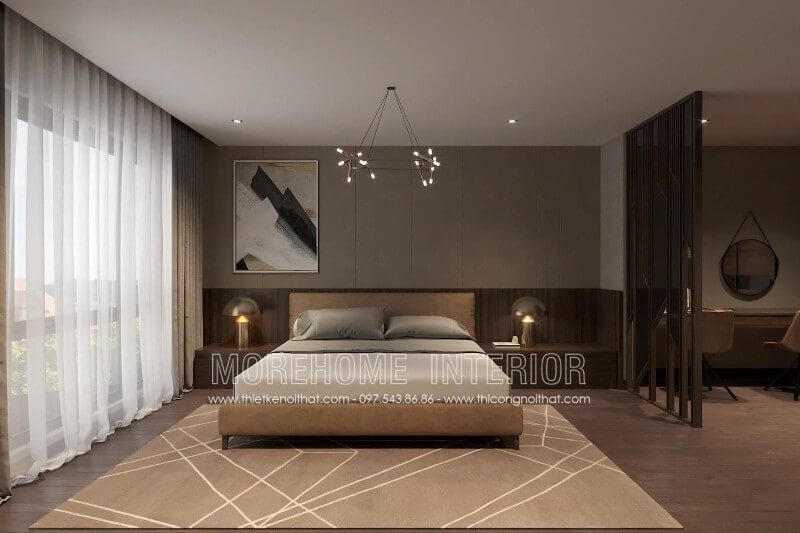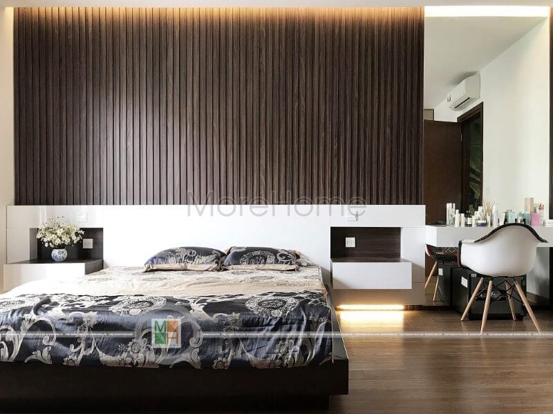 Vách gỗ ốp đầu giường phòng ngủ master biệt thự hiện đại