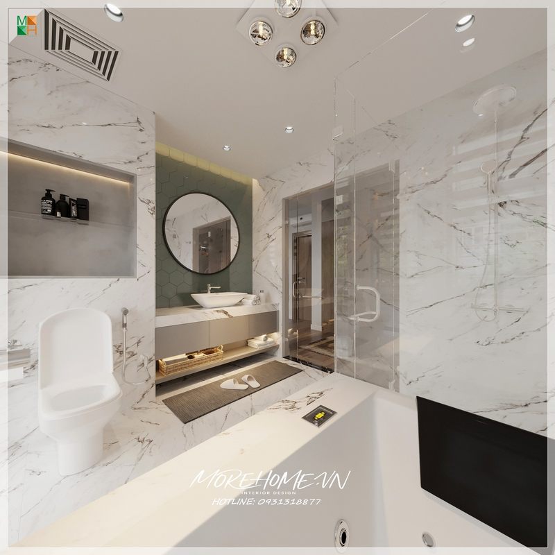 Phòng tắm không gian sử dụng cần thiết trong mỗi gia đình thiết kế nội thất phù hợp với không gian diện tích và đáp ứng mục đích sử dụng đem tới sự gọn gàng thoải mái cho gia chủ.
