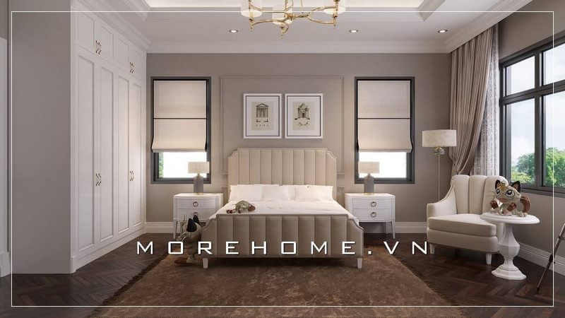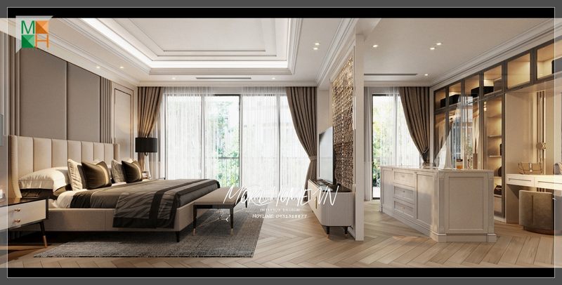 Mẫu tủ quần áo phòng ngủ biệt thự phong cách tân cổ điển đầy sang trọng