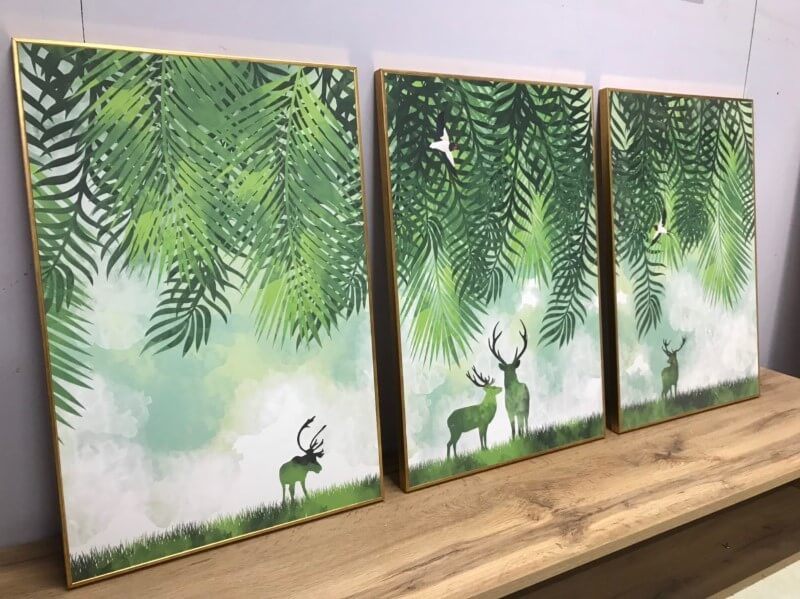 Bộ 3 tranh Canvas chủ đề Hươu và cây xanh