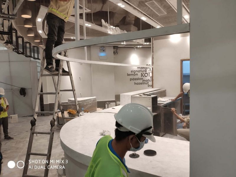 Thi công hạng mục quầy bar cafe đá ốp Himacs cao cấp