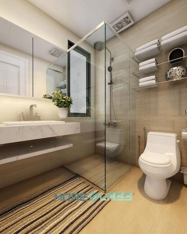 Thiết kế phòng tắm với kính cường lực trong suốt hiện đại
