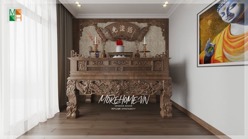 Phần lớn tín ngưỡng của dân Việt Nam bị ảnh hưởng sâu sắc từ Phật giáo thiết kế phòng thờ Phật tôn nghiêm trang trọng với quan niệm vấn đề thờ phụng là giúp cho tâm an lành luôn có đức thánh phù hộ